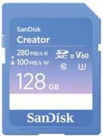 SanDisk Creator SD Card UHS-II 128 GB (For DSLR and Mirrorless Cameras, 6K Video, V60 Memory card, USH-II, Read Speeds up to 280 MB/s RescuePro Deluxe, 1 Month Adobe Creative Cloud Included)
