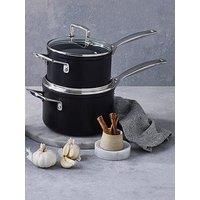 A saucepan with a helper handle and lid, from Le Creuset's Toughened Non-Stick cookware range. The Toughened Non-Stick range boasts innovative technology from its three-layer reinforced non-stick surface to the induction-compatible base. The cookware is made from high-quality, hard-anodised forged aluminium for excellent heat retention and even heat distribution. It's toughened inside and out with coatings that are durable, PFOA-free, easy to clean and can withstand the use of metal utensils, with car... - Manufacturers part numbers: 51108160010302|VRHCB