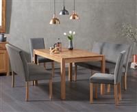 This Oxford 150cm Solid Oak Dining Table combines elegant design with robust construction. Built from solid oak, the table's pragmatic design can easily seat 6 to 8 diners, which makes it an ideal option for a range of possibilities from entertaining guests to regular family dinners. Its clear lacquer effect allows the natural beauty of the oak from which it is built to be appreciated. The finishing touches include its discreet finger-jointed design and practical straight legs. The set is finished by t...