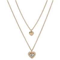 Fall in love with this DKNY layered gold heart necklace. Featuring two delicate heart charms- one sleek and polished, the other sparkling crystal. The perfect balance of simplicity and shine! Great for gifting. Packaged in a branded pouch. yellow gold plated. Metal colour: yellow. Crystal set pendant. Stone shape: heart. Length of necklace 40cm/16cm/16in. Clasp type: lobster. Total weight of product approximately 9.8g. General information: Manufacturers 1 year guarantee. EAN: 642447540574.