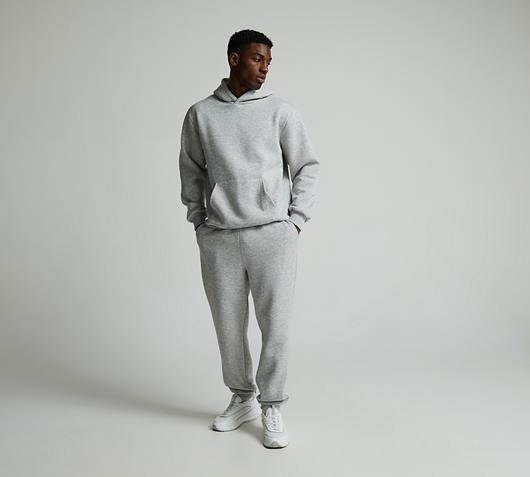 Closure London Relaxed Fit Suit in Light Grey Marl. A suitably relaxing way to start a relaxing day as Closure London bolsters your everyday casual attire with this minimally presented 2-piece set. The top half is an overhead hoodie complete with fixed hood, ribbed cuffs and hem and front kangaroo pouch pocket for your hands or stowing away your small belongings. The matching bottoms come equipped with an elasticated adjustable drawstring waistband for a great custom fit, ribbed cuffs and handy open sid...