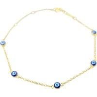 This Turkish evil eye charm bracelet is a modern take on a centuries-old symbol of protection and good fortune. Featuring five blue enamel evil eye charms strung along a fine gold-toned chain, this dainty piece blends tradition with contemporary style. Designed for everyday wear or thoughtful gifting, it measures 1619cm with an adjustable fit to suit most wrist sizes. The iconic eye motif is believed to ward off negativity, making this bracelet a meaningful token of love, friendship, and positive energy...