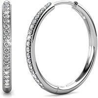 These elegant 20mm round hoop silver earrings are beautifully embellished with certified Austrian crystals, offering a brilliant sparkle that elevates any outfit. Crafted from sterling silver with a sleek finish, their classic hoop design is perfect for both everyday wear and special occasions. The certified crystals ensure exceptional clarity and fire, making these earrings a timeless addition to your jewellery collection or a thoughtful gift for a loved one | Harfi Women's Round Hoop 20mm Silver Earr...
