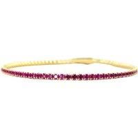 Adorned with glowing 2mm Ruby CZ stones, this bracelet symbolises passion, love, and confidence. Its delicate 7-inch design fits most wrists, adding a bold yet elegant touch to any jewellery collection. Delivered in our luxury packaging, it makes a heartfelt and beautifully presented gift. Perfect for July birthdays or anyone drawn to the richness of Ruby. | Harfi Women's Ruby July Birthstone Dainty Tennis Bracelet in Gold | Size: 7 inches