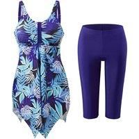 Crafted from soft and quick-drying polyester, this two-piece tankini swimsuit offers a lightweight and breathable feel. Designed for style, it features a flowy tunic-style top that adds elegance. The Capri swim pants provide additional coverage, allowing you to move with ease in and out of the water. Additionally, the adjustable shoulder straps allow for a customized fit, ensuring all-day comfort. Whether you're lounging by the beach, enjoying a poolside party, or having fun at a water park, this tanki...