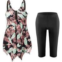 Crafted from soft and quick-drying polyester, this two-piece tankini swimsuit offers a lightweight and breathable feel. Designed for style, it features a flowy tunic-style top that adds elegance. The Capri swim pants provide additional coverage, allowing you to move with ease in and out of the water. Additionally, the adjustable shoulder straps allow for a customized fit, ensuring all-day comfort. Whether you're lounging by the beach, enjoying a poolside party, or having fun at a water park, this tanki...