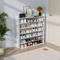 An ideal solution for organizing your footwear! The rack features 7 tiers, providing ample room to store a variety of shoes, making it perfect for households with multiple members or shoe enthusiasts. The spacing between each shelf is thoughtfully designed with sturdy construction while maximizing the use of vertical space. Its open shelving design allows for easy access to your shoes, keeping them neatly arranged and visible at all times. The minimalist white finish complements any room decor, whether it is placed in your hallway, closet, bedroom, or entryway. | Living and Home 7-Tier Shoe Rack Shoe Cabinet for Entryway in White - Manufacturers part number: Living and Home_0659046905222