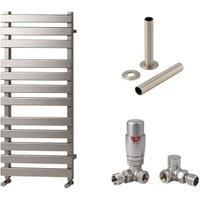 Towelrads Haven 1200 x 500mm Flat Panel Designer Brushed Nickel Towel Radiator with Corner TRV & Pipe Sleeve