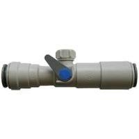 A push-fit valve for the connection of plastic and copper pipe. The valve only allows water to flow through in one direction therefore preventing backflow of potential contaminants. This particular check valve also has a built-in isolator.