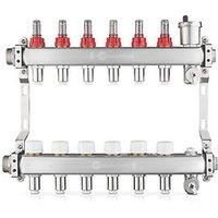 High performance LowFit underfloor heating manifold. Fast and simple to install. Features 12mm JG Speedfit push-fit connections and comes with a pre-mounted bracket and vibration isolation mount. Fully assembled with flow and return rails, adjustable flow meters, automatic air vent and fill valve. Protective dust caps are supplied on the return rail, which can be removed when installing circuit actuator valves to open and close the flow of water to each pipe loop. Valves on the return manifold are compa... - Manufacturers part number: JGLOWFITMAN6