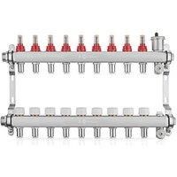High performance LowFit underfloor heating manifold. Fast and simple to install. Features 12mm JG Speedfit push-fit connections and comes with a pre-mounted bracket and vibration isolation mount. Fully assembled with flow and return rails, adjustable flow meters, automatic air vent and fill valve. Protective dust caps are supplied on the return rail, which can be removed when installing circuit actuator valves to open and close the flow of water to each pipe loop. Valves on the return manifold are compa... - Manufacturers part number: JGLOWFITMAN9
