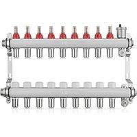 Stainless steel underfloor manifold. Connects and centralises underfloor (UFH) pipework in one place and distributes warm water through pipe circuits to provide even and comfortable heat. Fast and simple to install with pre-fitted wall bracket and vibration isolation mount. Features 15mm JG Speedfit connections and an integral air vent, fill valve and adjustable flow metre. Pre-assembled flow rate indicators for adjusting flow and isolating pipe circuits. Protective dust caps are supplied on the return ... - Manufacturers part number: JGUFHMAN93