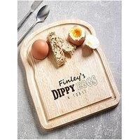 Love Abode Personalised Eggcellent Food Board Personalised Egg Board What better way to serve them their breakfast, lunch, or a snack than with their very own personalised egg board. Complete with two circular hollows to nestle your perfectly cooked eggs in. There is more than enough room to add a heap of crisp soldiers, ready for dipping. Simply personalise by adding any name to suit your requirements. A perfect gift they will treasure. The Egg Board is 20cm wide X 24cm Long - Wipe clean only. Depth: 5...