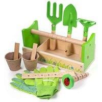 Ideal for gardens or window boxes, our Kids Garden Caddy is packed with childrens garden tools and everything young gardeners need to get started. Made from high-quality wood, the garden caddy is delicately decorated in a bright green shade with colourful flowers and ladybirds. Comes with 11 play pieces in total, including gardening gloves, a ruler, a trowel, a fork, a rake and much more. Each of the gardening tools are specially designed for little hands in mind. The handles are crafted from smooth woo...