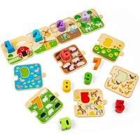 A fun first introduction to maths, toddlers can explore numbers and counting with this 1-10 Tile Puzzle. It works by piecing the tiles together, then placing the wooden numbers into the correct slots. Each tile features a cute farmyard-themed illustration and the numbers are coloured to engage littlens and enhance their colour recognition. Number puzzles are an excellent learning tool for young minds, as they help to strengthen childrens dexterity, hand-eye coordination and problem-solving skills, while...