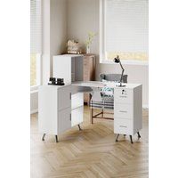 This manicure table is designed for professional nail technicians who value efficiency. It features a sleek white design that seamlessly fits into any salon setting. Its spacious tabletop provides ample room for smooth and efficient service. It includes two cabinets, multiple open shelves and three drawers, offering plentiful storage space to neatly organise various nail tools and supplies, keeping the workspace tidy. All drawers and cabinet doors are equipped with silver bar handles for easy opening and closing. Additionally, the silver support legs at the base enhance overall stability while adding to the refined appearance of the table. | Living and Home Mobile Manicure Table with Built-in Dust Collector in White - Manufacturers part number: Living and Home_0694162612678