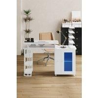 This manicure table blends storage and functionalityperfect for high-end salons. Its minimalist white design with a blue transparent cabinet door offers a modern, professional look. The spacious tabletop provides ample room for smooth and efficient nail services. At the top, four open acrylic shelves offer convenient display space for nail polishes and product samples, allowing clients to browse easily. Below, one side features a three-tier open shelf for frequently used nail tools, while the other side includes a drawer and a cabinet for flexible storage of nail supplies. Plus, rounded handles on the drawer and the cabinet door ensure easy opening and closing. | SHEONLY Professional Mobile Manicure Table with Built-in Dust Collector in White - Manufacturers part number: SHEONLY_0694162612692