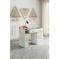 This manicure table is a salon essential, featuring a stylish marble-textured finish and practical design. The spacious surface provides ample workspace for all nail services. A soft wrist cushion enhances client comfort during treatments. A built-in dust collector quickly removes nail clippings and dust. Multiple storage spaces help to keep all your tools and products neatly organized and within easy reach. | SHEONLY Manicure Table with Built-in Dust Collector in White - Manufacturers part number: SHEONLY_0694162612715
