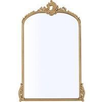 This decorative mirror features carved patterns on its frame, exuding classical elegance and artistic value. Made from copper-free materials, it ensures safety while reducing heavy metal pollution. The mirror surface offers high reflectivity and lasting clarity, making images brighter and more true-to-life. The use of PVC material on the back provides excellent moisture and mildew resistance. Smooth and rounded edges without sharp corners guarantee safety during use. Whether in bedrooms or entryways, it seamlessly integrates, serving as both a functional item and a decorative piece of art, adding a touch of unique charm to your home. | Living and Home 66x96cm Antique Gold Decorative Arched Top Wall Mirror with Ornate Carved Frame - Manufacturers part number: Living and Home_0694162622943