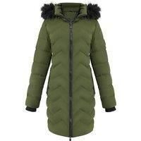 Stay warm and stylish throughout the winter months with this mid-length chevron quilted coat. Designed for the modern individual, it blends fashion-forward details with exceptional warmth. The coat features a chevron quilted pattern, offering a sleek yet comfortable silhouette. Its solid hue lends modern appeal, while the mid-length design provides practical coverage and effortless wear. A detachable hood with faux fur trim offers wind resistance for varying weather conditions, and can be easily removed...