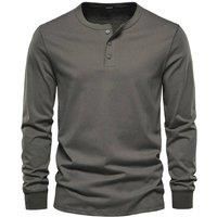 MODISHION Men's Long-Sleeved Henley T-Shirt in Grey | Size: 2XL