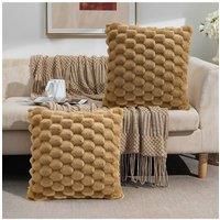 Snuggle up with our exquisitely soft cushion covers! The unique textured design enhances the visual appeal, adding depth and sophistication. The simple, stylish aesthetic complements modern dcor and suits those who appreciate quality and contemporary living. The plush surface feels wonderfully delicate and comforting against your skin. Durable and easy to care for, they are machine washable and retain their softness after washing. Perfect for adding a touch of modern charm to your living room, bedroom, or office. Refresh your home with these irresistibly soft and stylish cushion covers! | Living and Home 2 Pieces Cozy Soft Plush Throw Pillow Cushion Covers in Khaki | Size: Double