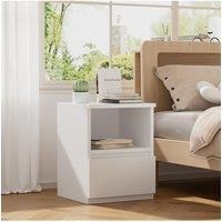 Add a touch of freshness and convenience to your bedroom with our bedside table in a warm white hue, perfectly blending into various modern minimalist styles. The spacious tabletop and an open shelf allow items to be clearly visible and easily accessible. The drawer below is ideal for storing small personal items like wallets and keys, keeping the space tidy and dust-free. Moreover, its smooth surface is easy to clean, requiring just a light wipe to look as good as new. Whether in the bedroom, living ro...