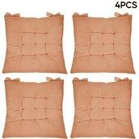 This chair cushion provides targeted support for your back, waist, and hips, helping maintain proper posture and promote leg circulation to significantly reduce fatigue even during prolonged sitting. Its corduroy surface offers a cloud-like softness, enveloping you in gentle comfort with every use. The anti-slip straps ensure a secure fit on any chair, while the quilted stitching enhances durability by evenly distributing filling and preventing sagging over time. Whether used as a chair cushion for work/study or placed on a sofa for extra back support during relaxation, it offers cozy relief, gently easing the weariness of your day. | Living and Home Set of 4 Comfortable Square Chair Cushions in Brown - Manufacturers part number: Living and Home_0694162641371