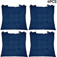 This chair cushion provides targeted support for your back, waist, and hips, helping maintain proper posture and promote leg circulation to significantly reduce fatigue even during prolonged sitting. Its corduroy surface offers a cloud-like softness, enveloping you in gentle comfort with every use. The anti-slip straps ensure a secure fit on any chair, while the quilted stitching enhances durability by evenly distributing filling and preventing sagging over time. Whether used as a chair cushion for work/study or placed on a sofa for extra back support during relaxation, it offers cozy relief, gently easing the weariness of your day. | Living and Home Set of 4 Comfortable Square Chair Cushions in Dark Blue - Manufacturers part number: Living and Home_0694162641418