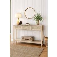 The H&O Direct Console Table features a blend of wood and rattan accents, creating a rustic and charming piece for your home. Whether you place it in your living room, hallway, or bedroom, this console will offer style and functionality. Its countertop can hold a stylish mirror, lamp, vase or other decorations. The open bottom shelf is ideal for storage baskets or taller display items for extra arrange. The design of rattan drawers can facilitate you to store some small items, making your living space c...