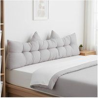 Elevate your bedroom style with our elegant headboard pillow. Featuring a minimalist solid-colour design with two cute cat-ear-shaped triangles, it adds a playful touch, instantly enhancing the warmth and charm of your space. Filled with high-elasticity PP cotton, it provides strong support and maintains its shape over time for long-lasting comfort. The ergonomic design contours to your back and waist, helping reduce fatigue from sitting or lounging. Perfect for use at your bed, on sofas or on tatami mats, it is an ideal companion for reading, watching shows, or relaxing at home. | Living and Home Cat Ear Shaped Upholstered Headboard Pillow in Light Grey - Manufacturers part number: Living and Home_0694162644150