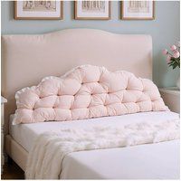 Elevate your bedroom style with our elegant headboard pillow. Featuring a minimalist solid-colour design with a delicate white ruffled edge, it adds a romantic touch and blends seamlessly into bedrooms or living spaces, creating a warm and cosy atmosphere. Filled with high-elasticity PP cotton, it provides strong support and maintains its shape over time for long-lasting comfort. The ergonomic design contours to your back and waist, helping reduce fatigue from sitting or lounging. Perfect for use on beds, sofas or tatami matsideal for reading, watching shows, or relaxing in comfort. | Living and Home Upholstered Headboard Pillow with Ruffle Trim in Pink - Manufacturers part number: Living and Home_0694162644457