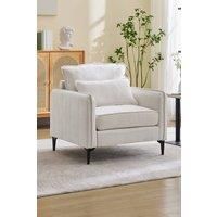 Experience unparalleled comfort and sophisticated style with this luxurious sofa. Upholstered in super-soft chenille, it is wonderfully breathable and feels gorgeous against your skin. Generously sized, the seat provides ample space for you to relax and unwind in absolute comfort. Complete with supportive back and lumbar cushions, it promises supreme relaxation. Its simple modern design are elevated by vertical piping detailing along the sides, adding a sophisticated textural element and visual appeal. It effortlessly complements a variety of interior styles, from contemporary chic to charming Nordic settings. Ideal for living rooms, studies, or bedrooms, it is more than just seating it is a stylish upgrade for any space. | Living and Home Linen Single Sofa Armchair with Pillow in White - Manufacturers part number: Living and Home_0694162645331