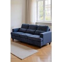 Bring a sense of style to your living space! Exquisite textured fabric ensures a soft and welcoming feel, perfect for creating a warm, relaxing atmosphere during cosy evenings. Generously filled cushions and a supportive backrest offer exceptional comfort, even during extended use. Marvel at its clean lines and elegant colour palette, bringing modern sophistication to any room. Complete with three decorative accent pillows, adding lumbar support as well as practical functionality and style. | Living and Home 3-Seater Chenille Upholstered Sofa with Pillows in Blue - Manufacturers part number: Living and Home_0694162645478