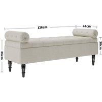 Introduce this elegant storage bench from to your home to complete its transformation! It not only provides discreet storage for folded blankets at the bed's end or toys in the living area but also adds stylistic flair to your home ensemble. Upholstered in luxurious fabric, the bench serves as a comfortable extra seating spot. The two side bolstered pillows contribute a vintage feel and offer welcome support for your head. | Tufted Flip-Top Storage Bench with Side Arms in Beige