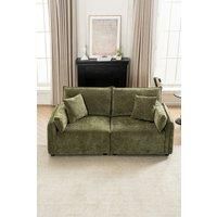 Embrace modern sophistication with this stylish sofa, designed for both comfort and elegance. Its plush, deep cushions offer exceptional support and a cloud-like seating experience, perfect for relaxation. Featuring decorative throw pillows, it provides superior comfort and adaptable style. The gracefully curved armrests blend seamlessly with its fluid lines, creating a warm yet fashionable ambiance. Low-profile black feet ensure stable support while lending a contemporary feel. Ideal for living rooms, lounges, or bedrooms, this sofa is both a functional centrepiece and a chic design accent. | Living and Home 2-Seater Chenille Upholstered Sofa with Throw Pillows in Green - Manufacturers part number: Living and Home_0694162645966