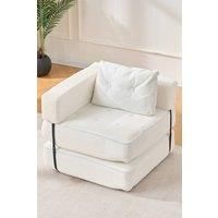 Embrace modern living with this stylish sofa bed, a perfect blend of comfort and practicality. Its compact design features a plush, supportive seat with high-density sponge that retains its shape. Effortlessly transform it from a chic sofa to a comfortable bed, ideal for lounging or accommodating guests, saving valuable space. It comes with a matching cushion for added comfort and visual harmony. This versatile piece offers understated elegance and essential functionality, bringing a touch of sophisticated simplicity to your home. | Living and Home Corduroy Folding Sofa Bed with Pillow in White - Manufacturers part number: Living and Home_0694162646178