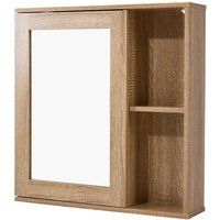 This bathroom mirror cabinet maximises space with style. Featuring a stylish mirror-in-frame design with a natural wood finish, it adds both elegance and warmth to your decor. One side offers a mirrored door with ample storage behind itthe mirror provides a clear, distortion-free reflection, perfect for daily grooming and makeup. Inside, adjustable shelves let you customise the spacing to accommodate items of various heights. The other side includes a two-tier open shelf for quick and easy access to frequently used essentials. Perfect for grooming, storage, and decor, it keeps your bathroom neat and functional. | Living and Home Wall-mounted Bathroom Mirror Cabinet with Adjustable Shelves in Natural - Manufacturers part number: Living and Home_0694162791229