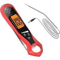 Size & Measuring Range: 165mm x 39mm 19mm; Measuring range: 58F-572F. Food Thermometer: Get a thermometer and food probe. Cooking Accuracy: Features a cooking accuracy of 0.1C. Material: Made from ABS plastic SS304. 2 In 1: This product works as a meat food thermometer and a food probe. Suitable For: Perfect for household food, BBQ food, and more.