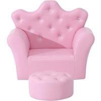 Construction: Crafted with a solid wood structure and soft padding, supporting up to 50kg, ensuring both security and durability. Features: With a unique crown design backrest and bright crystal buttons, this armchair adds a touch of enchantment to your child's room. Specification: See full details for more. Children's sofa: Get a children's pink upholstered armchair and footstool. Two-piece: This set includes an armchair with two side armrests and a matching footstool for extra comfort while relaxin...