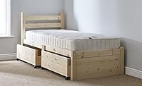 STRICTLY BEDS&BUNKS Storage Bed - 3ft single pine bed with TWO large drawers and 10" thick hypoallergenic mattress