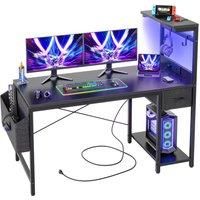 The BEXEVUE modern desk combines sturdy metal with MDF panels to create a sleek and elegant design, featuring a built-in power strip with 2 outlets, 1 USB, and 1 Type-C port with a 1.5-meter cord to keep your workspace neat and free of cable clutter. It includes a large drawer, side pocket, and an LED strip with remote control to customize lighting modes while offering generous storage and display space for lamps, books, and decorations.