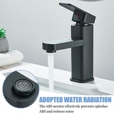 Faucet Body Material: Brass. Faucet Spout Material: Brass. Function: Bathroom Sink Faucets. Faucet Height:17cm. Water flow: 1.8 GPM. Installation Holes: One Hole. With 2 Water Inlet Hoses,40 cm. Number of Handles: Single Handle.