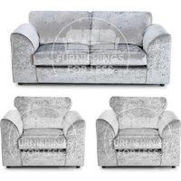 Crystal Crushed Velvet 5 Seater 3 Piece Sofa Suite - 3, 2 and Armchair Seater Full Back