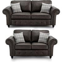Oakland 3 and 2 Seater Chesterfield Leather Air Charcoal Grey or Tan