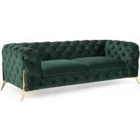 Stratus Interiors Modern Italian Chesterfield Sofa Plush Velvet 3 Seater 195W in Green | Size: 190 cm x 60 cm