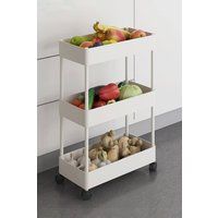 This trolley is made of high-quality ABS material, durable and not easy to rust and break, and is durable. It can solve your storage problems and help keep everything organized. Its hollow carved design can keep it from water. This trolley is equipped with rolling casters to help move easily. The storage utility cart can work anywhere in your home and make your home clean and comfortable. | Living and Home 3 Tiers Shelf Trolley Cart Fruit Vegetable Storage Rack for Kitchen Bathroom in White - Manufacturers part number: Living and Home_0744052881759