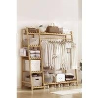 Got limited space to store your clothes£ This Livinandhome garment rack is here to help. Equipped with a 5-tier side shelf, a hanging rod, 2 side hooks, top and bottom shelves, it is perfect for your coats, shirts, shoes and bags. The anti-toppling trapezoidal design and the natural bamboo material are the double guarantee of stability. With a natural and fresh look, this clothing rack easily matches your room decor. - Manufacturers part number: Living and Home_0744052931041