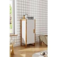 Experience this single-door bathroom cabinet with a bamboo-framed base, adding natural charm and practicality to your bathroom. Its unique bamboo frame base design is not only aesthetically pleasing but also showcases an eco-friendly concept. The cabinet offers ample storage space, featuring an adjustable shelf that makes it easy to organise your toiletries, towels, and other bathroom essentials.