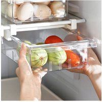Experience a clutter-free kitchen with our versatile fridge drawer organiser. It efficiently utilises the upper gaps in your fridge to increase storage capacity and enhance tidiness. Designed with transparent material, it allows for easy viewing of contents inside. The drawer-style design ensures smooth opening and closing, making it convenient to access food items. Moreover , featuring adjustable tracks with spring-loaded rods, it can be freely adjusted to fit various refrigerator models. Perfect for storing vegetables, fruits, or meat, it maintains food freshness efficiently. | Living and Home Pull Out Sliding Fridge Drawer Fruit Vegetable Organiser Food Storage Container in White - Manufacturers part number: Living and Home_0747674521492